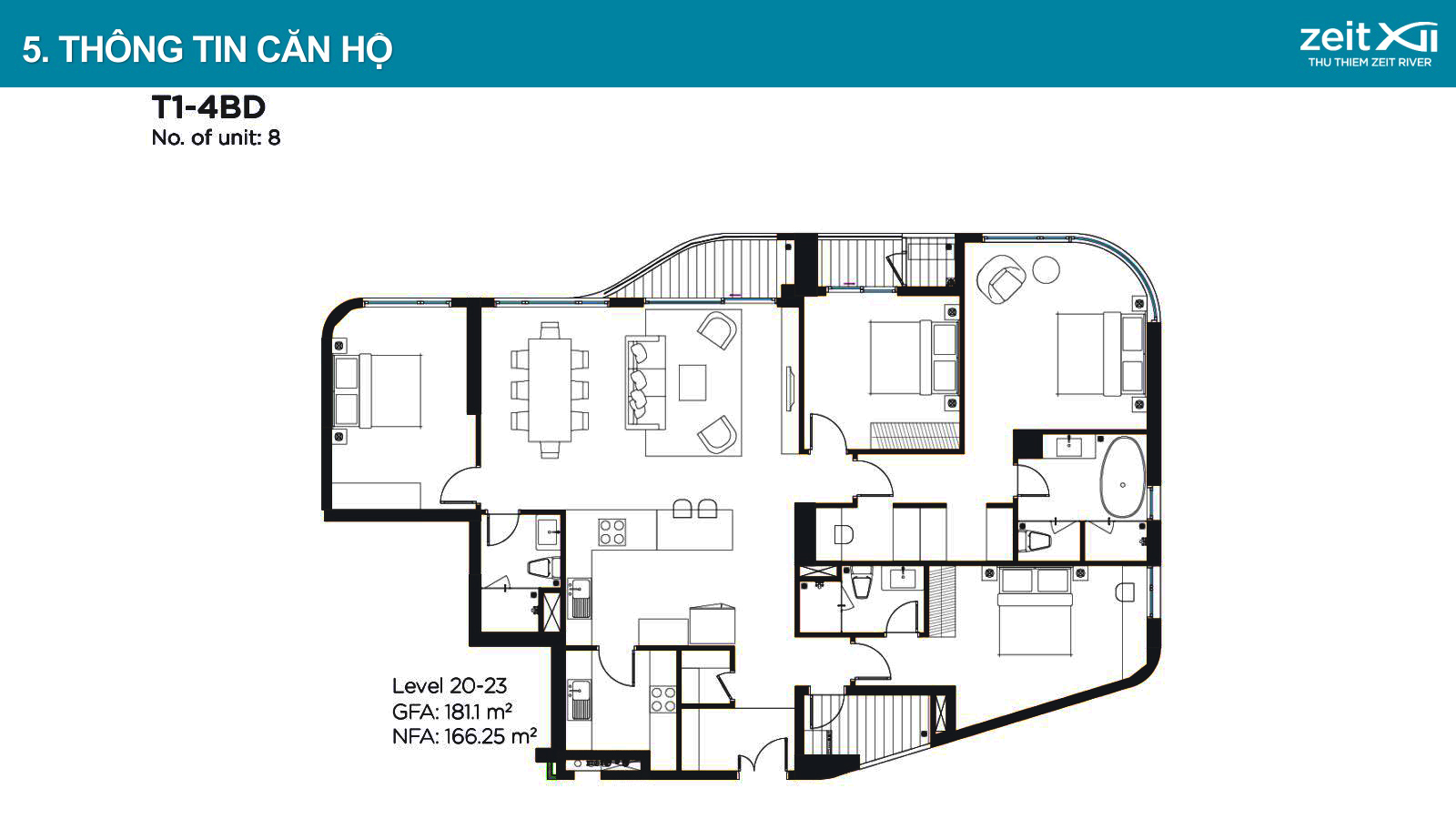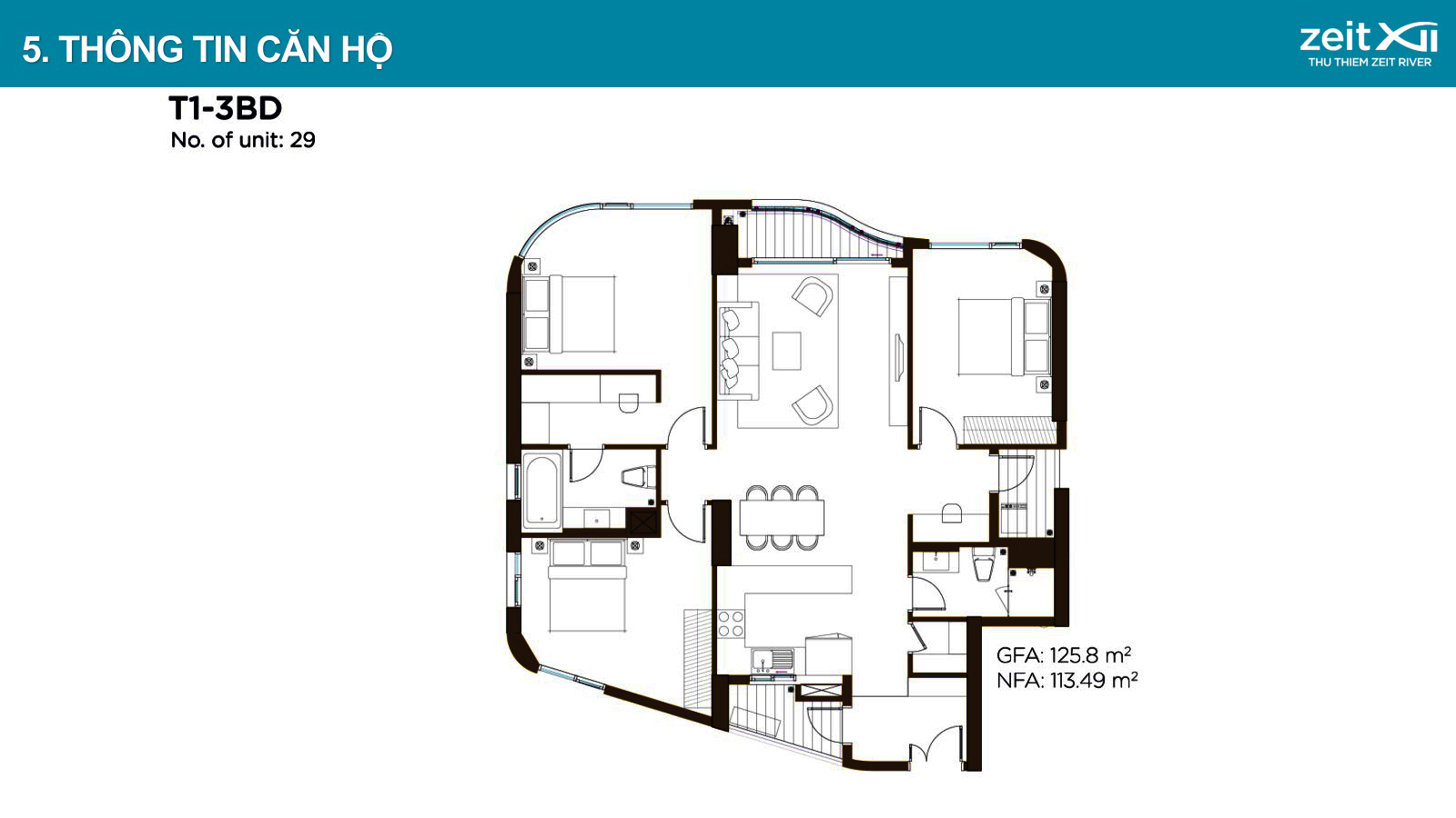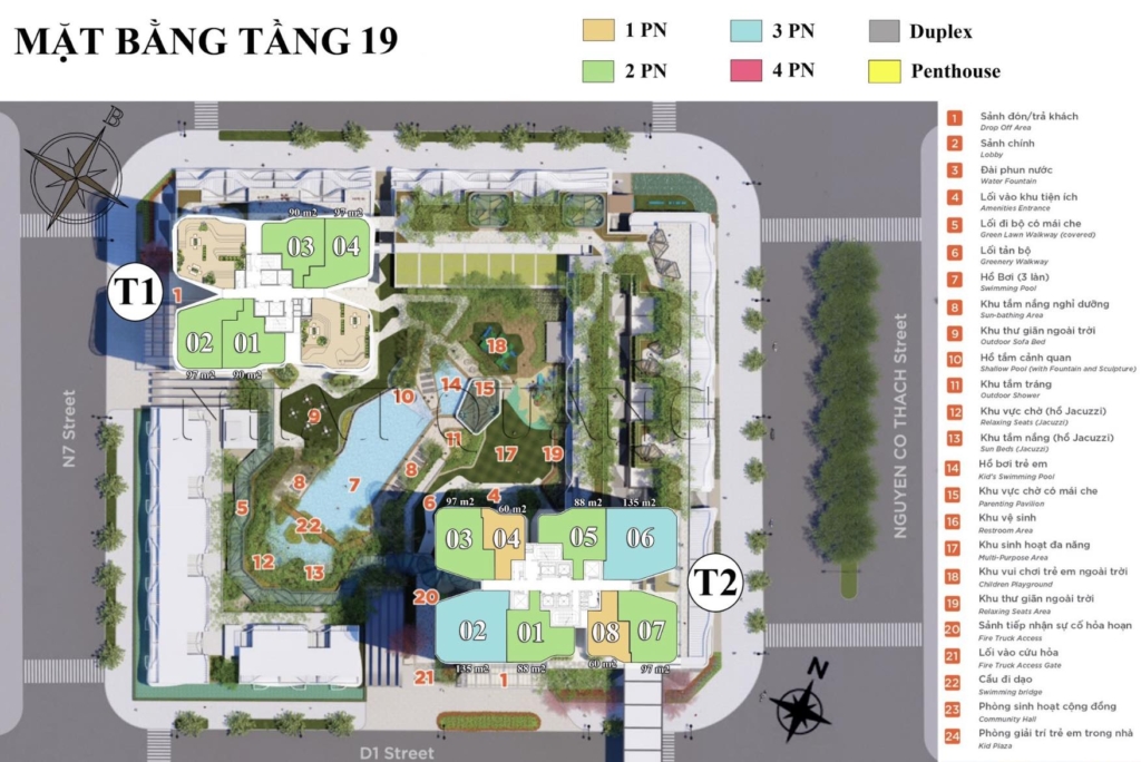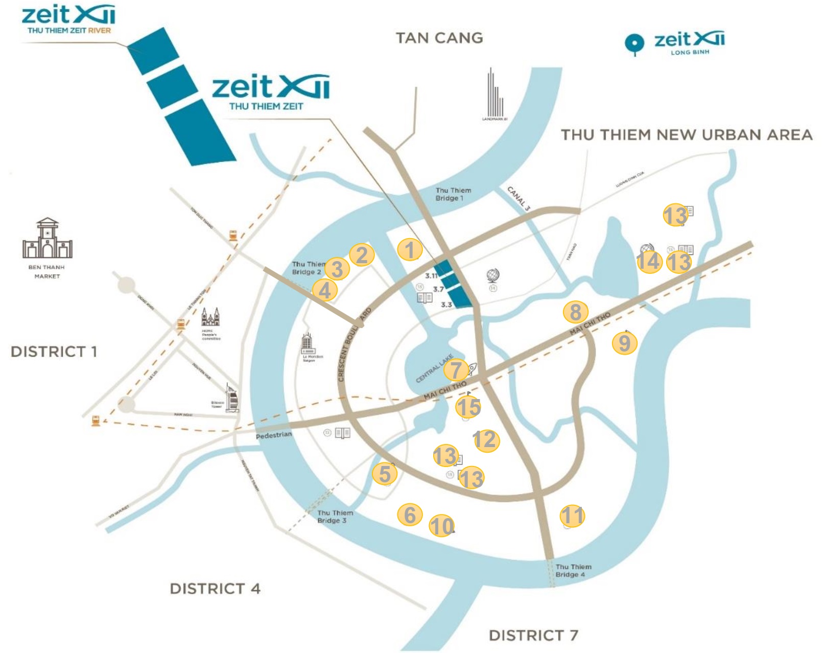 Thu Thiem Zeit River has an extremely favorable location, located at the intersection of Vong Cung and Nguyen Co Trach Boulevards, 2 arterial roads of Thu Thiem area when it is easy to move to District 1 through Thu Thiem Tunnel or Thiem Player.